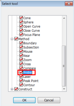 If the probe button is not on the measurement method toolbar, you can select the "System settingsàFunction Hidden" in the main menu, and check the "probe" option as shown below: