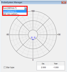 If the probe system is changed, for example, the probe body or the stylus is replaced, or the angle of the probe system is changed, in these cases you should recalibrate the probe system, or you can click the triangle symbol on the top left corner of the dialog box, and select the“add new system…”option to create a new probe system and calibrate it. You can also check the“star type”option to calibrate the star probe system. As shown below: The different grid points correspond to the different angel state of the probe system.