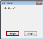 When the software pop up the "Go Home" dialog box as shown below. Be sure to confirm there are no obstacles on the worktable of the machine or around it, and then click the "Begin" button to find the