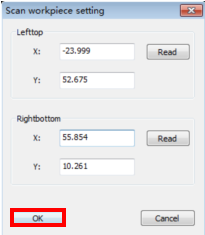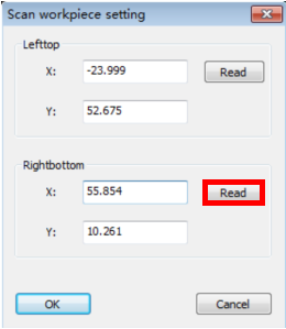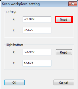 Step 3: Move the bottom right corner of the workpiece to the center of the image area and click the "Read" button at the bottom of the dialog box.