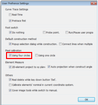Step 1: Select the pixel calibration type: Select the "System settingsàUser Preferences" in the main menu, and select the calibration type in the popup dialog box. In general, please select the "Using four circles " option for themeasuring instrument that its XY-axis with linear scales.